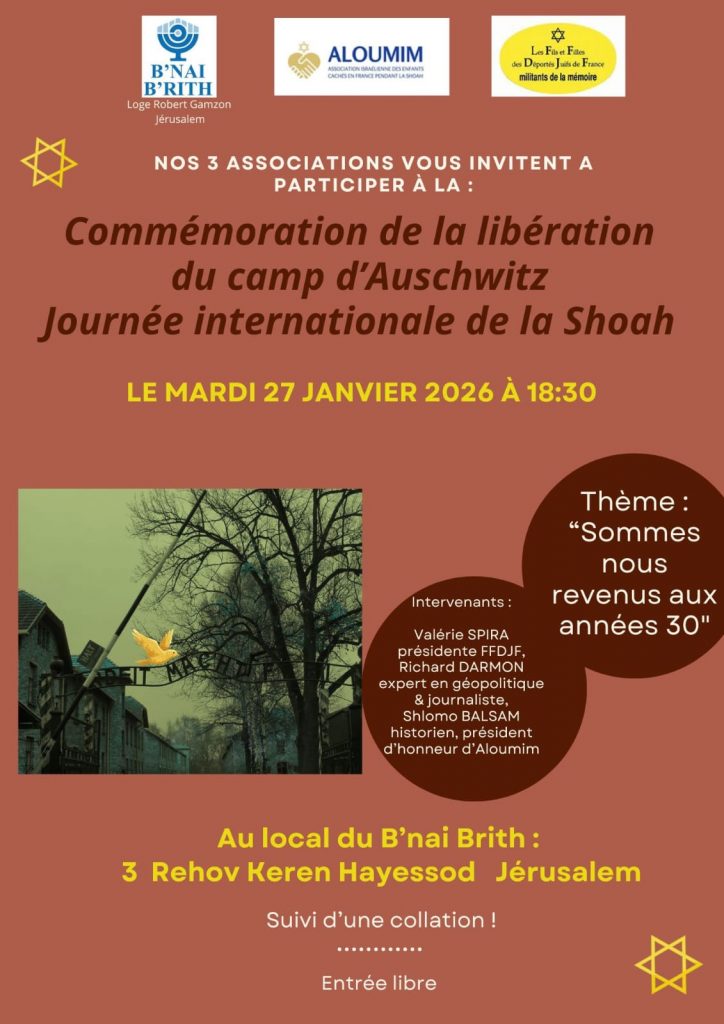 Toutefois je me dois de signaler le fait honteux qu’en France, le 27 janvier est la journée de la mémoire des génocides et de la prévention des crimes contre l’humanité…..exit la Shoah au moins dans son libellé….. La preuve sur : 27 janvier : journée de la mémoire des génocides et de la prévention des crimes contre l’humanité | Ministère de l’Education Nationale, de la Jeunesse, des Sports et des Jeux Olympiques et Paralympiques