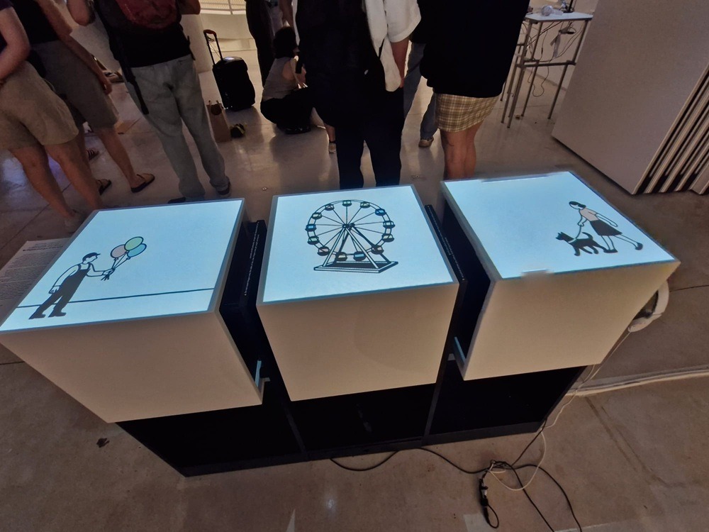 By Chance est un projet interactif de Hodaya Kabada et Efrat Zeroni du département d’Art Audio-visuel. Chaque cube fait apparaitre sur chacune de ses faces une image différente. En tournant la série de 3 cubes, on choisit, ou on laisse le hasard faire, et on interprète la combinaison des images pour créer une histoire à raconter. Chaque histoire est alors différente.