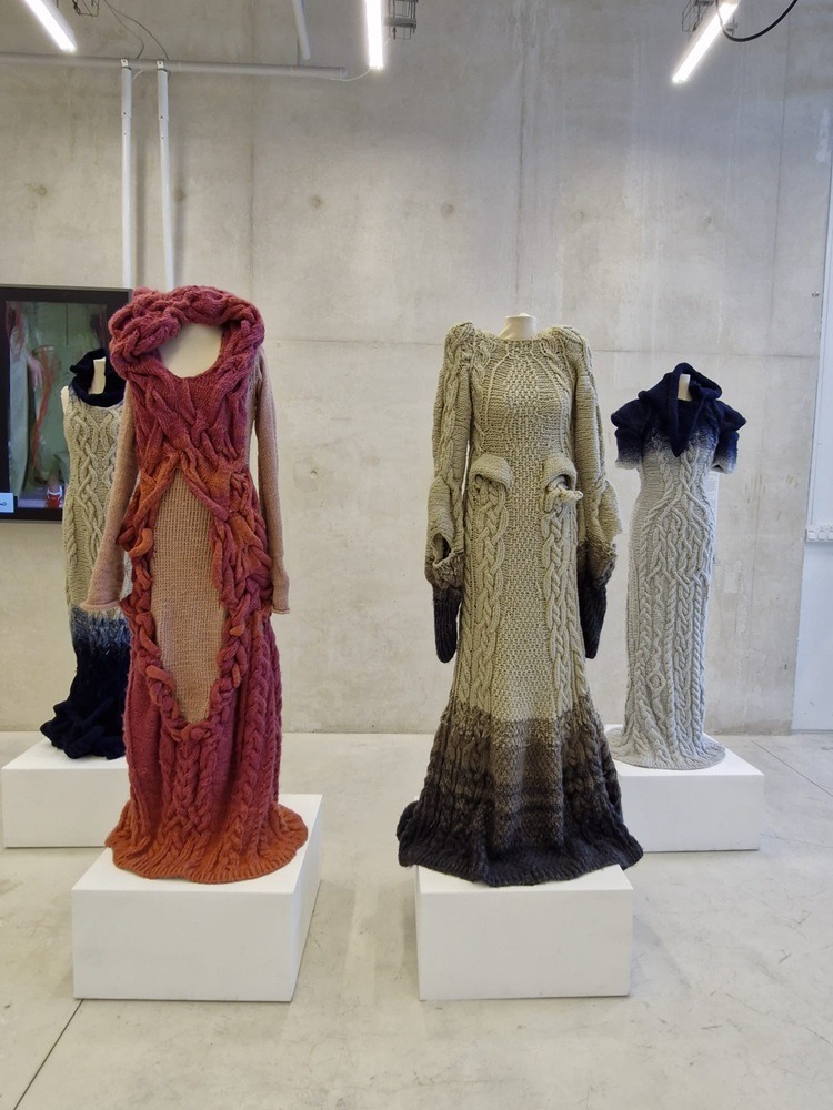 Angelina Brod quant à elle, tricote des robes très originales. Elle raconte que le tricot lui permet de trouver une sorte de paix intérieure par sa douceur et son aspect répétitif.