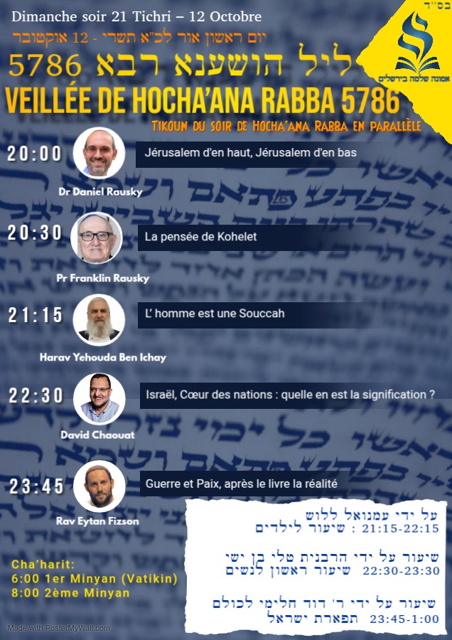 Fin de Souccoth 2025 : soirées d'étude d'Hoshana Rabba et Akafot Shniot