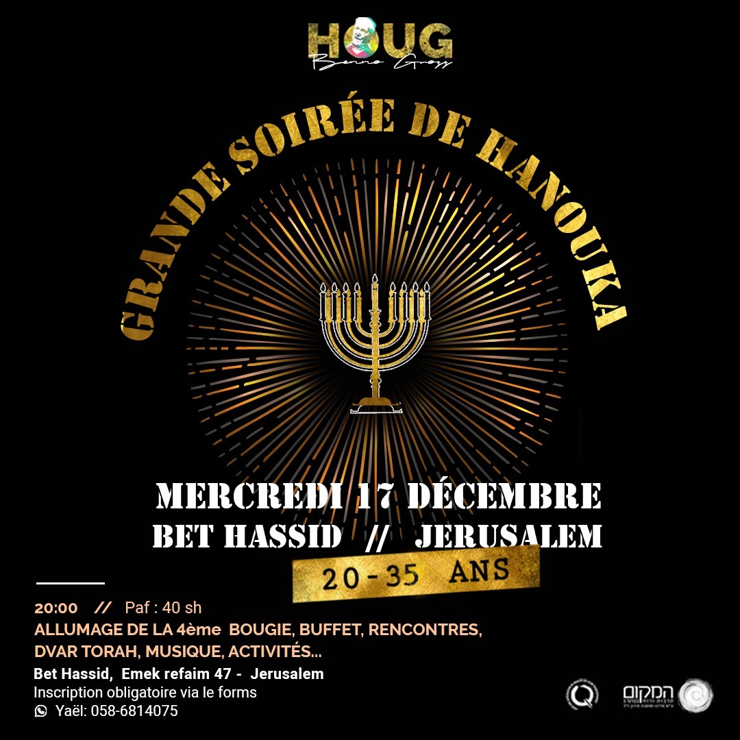 Inscription obligatoire : 17/12 : Hanouka avec le HOUG !