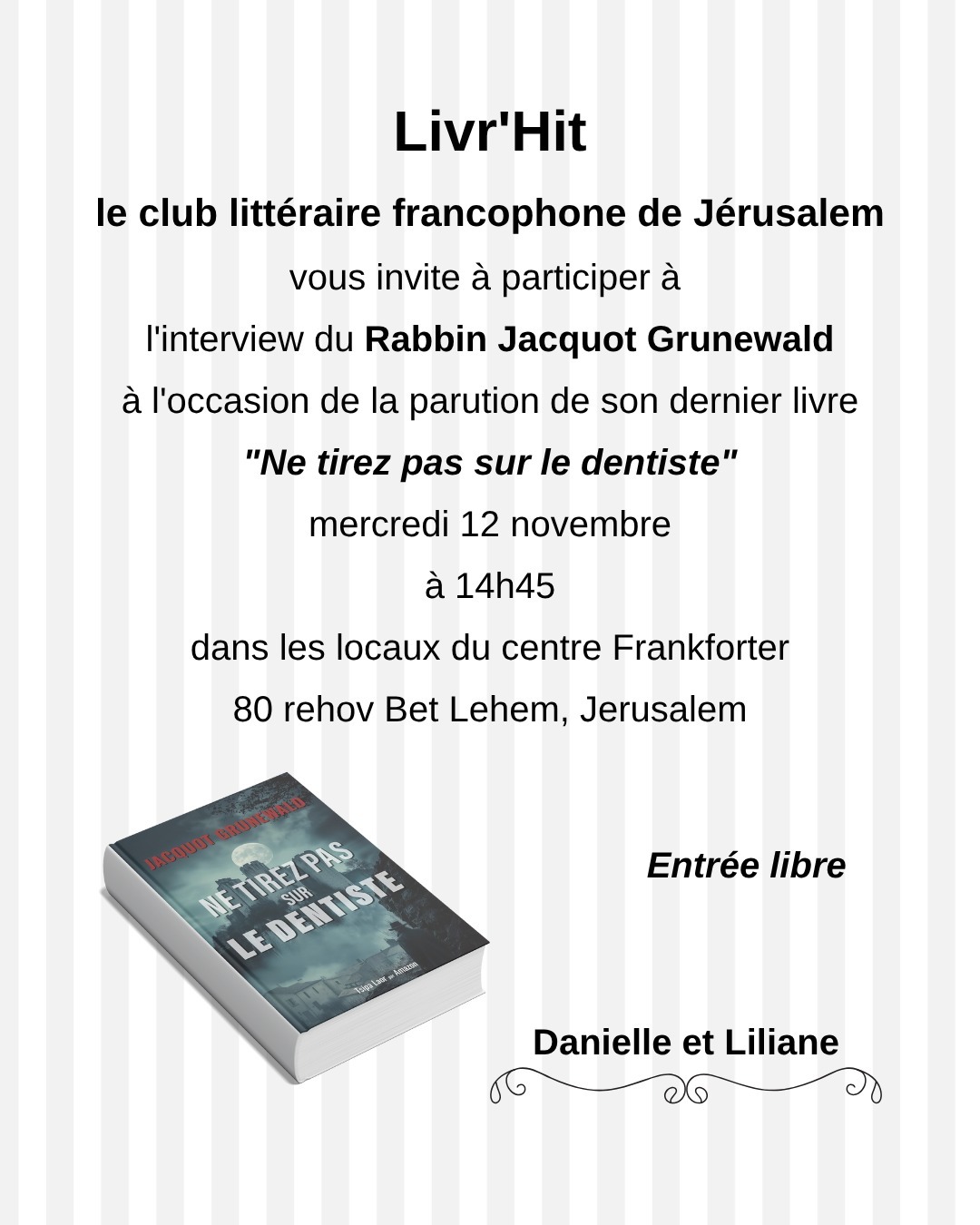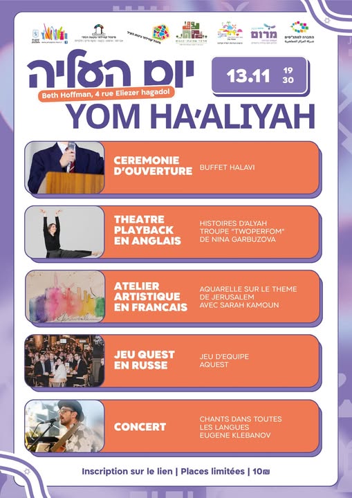 Alors voici ce qui vous attend comme activités francophones. Pour le reste, n’hésitez pas à consulter l’agenda du site : L’agenda de vos sorties – JérusalemFutée