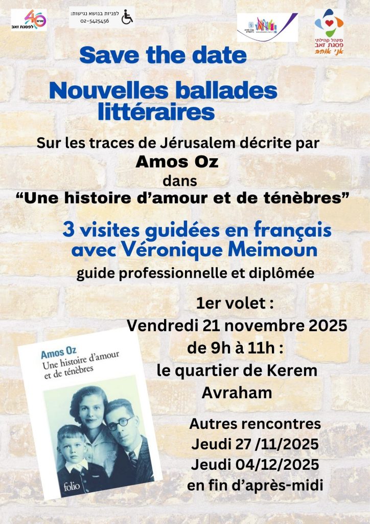 Ballades proposées par la Communauté francophone du Minhal Kehilati de Pisgat Zeev. Infos et lien d’inscription à venir.