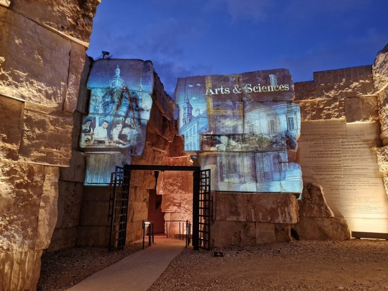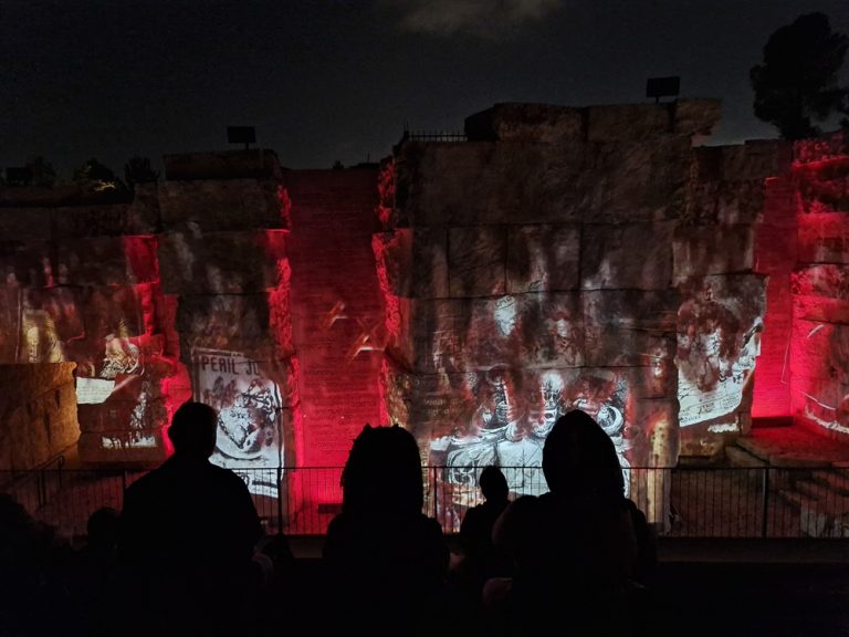 Le Son et Lumière se déroule à la tombée de la nuit dans la Vallée des Communautés. C’est une très bonne occasion d’aller voir cette partie moins connue du musée. La Vallée des Communautés comporte 107 murs creusés directement dans le sol de pierre et sur lesquels sont recensés les noms de 5000 communautés juives existantes avant la Shoah, dont la plupart ont été détruites.
