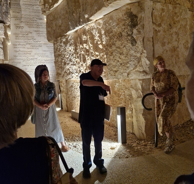 Une fois le noir et le silence revenus dans la Vallée des Communautés, on peut suivre une petite visite guidée à travers les différentes allées. Lors de mon passage, j’ai eu la grande chance d’être guidée par Shlomo Balsam, un très bon ami, président d’honneur de l’Association Aloumim – association israélienne des enfants juifs cachés en France durant la Shoah. Comme nous n’étions pas très nombreux – une petite trentaine peut-être – il a demandé à chacun d’où il venait. Et comme il connait l’endroit comme sa poche, il nous a montré sur différents murs, le nom des communautés d’origine des participants, en racontant parfois des anecdotes sur les Juifs qui y vivaient avant la Shoah.
