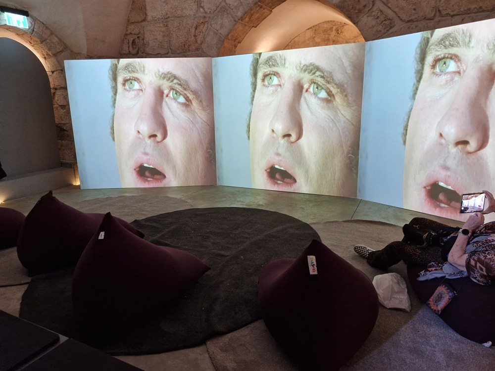 L’exposition Yehoram Gaon se poursuit de l’autre côté du musée, dans une petite salle équipée de 3 écrans, de bancs et de poufs pour s’asseoir. Là, on y découvre des extraits des 3 films que l’artiste a consacré à Jérusalem, sa ville de naissance et de coeur : « Je suis Jérusalem », » De Toled à Jérusalem » et » Je ne suis plus Jérusalem ». Il y exprime et notamment dans le 1er tourné en 1971 – à travers des images d’archive, des interviews et bien sûr certaines de ses chansons – la fierté qu’est la sienne après la Guerre des 6 Jours de 1967, d’être de retour à Jérusalem.
