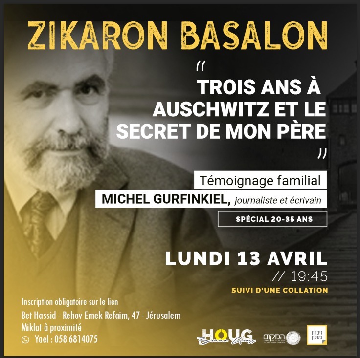 Plus d’infos et liens d’inscription : Zikaron BaSalon 2026: écouter les derniers témoins – JérusalemFutée